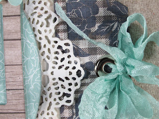 Almost forgot... I slipped in a piece of a doily cut with Alterations new Doily Thinlits die that I inked up with Faded Jeans, Weathered Wood and Vintage Photo plus water. Also glued on a twig vine mini heart and a piece of a vine that my granddaughter, Adelaide brought me from her walk in the woods with her mom.